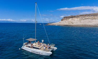 Recorra a bordo del catamarán Kalima Kat por la costa sur de Tenerife. Mucho más cómodo que un velero, estea espaciosa embarcación brinda una estabilidad incomparable...